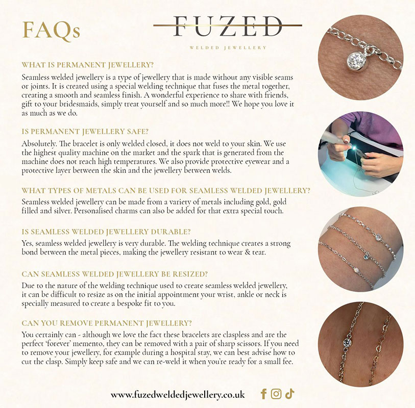We offer a bespoke jewellery experience, where our trained permanent jewellery experts design, custom fit and weld your unique forever piece.